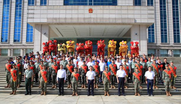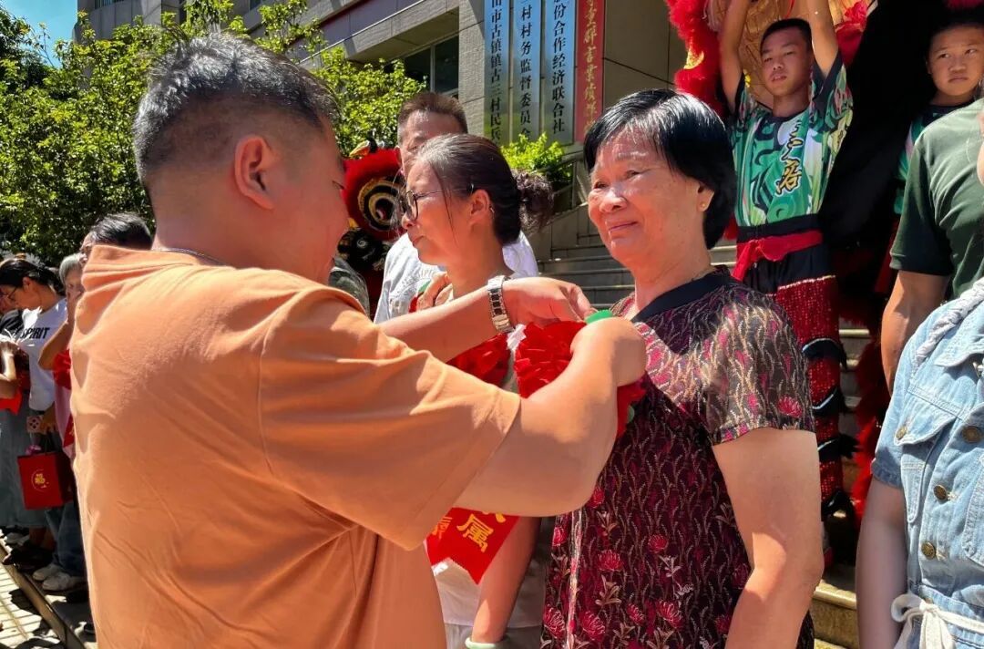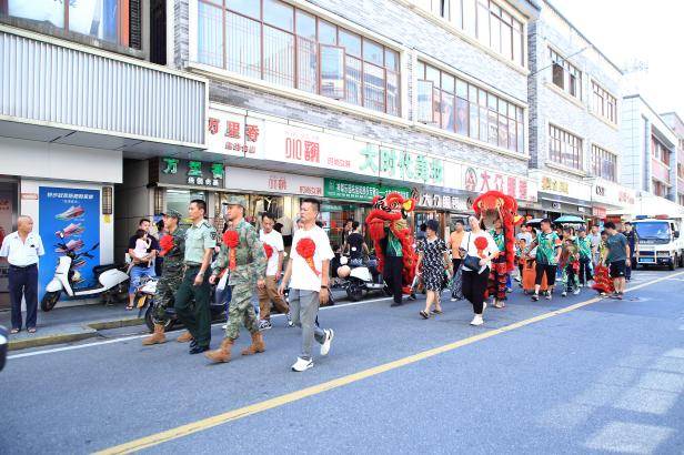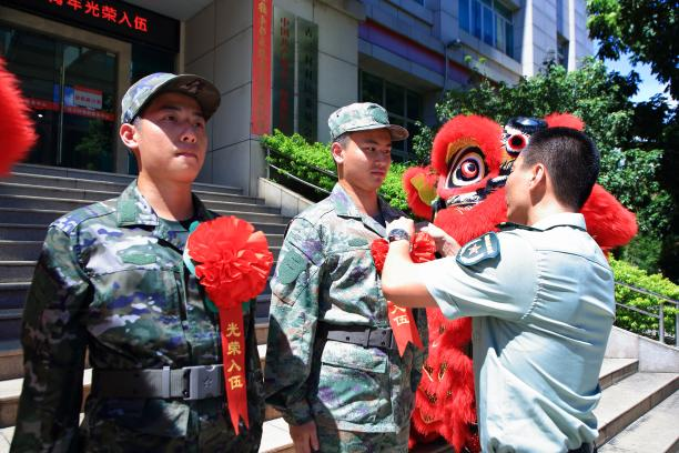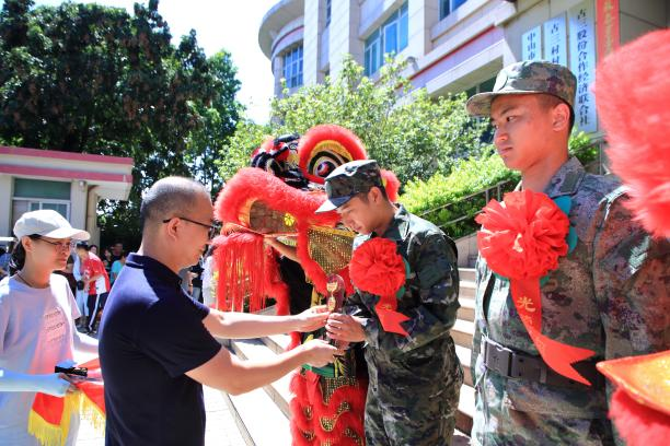 锣鼓喧天,雄狮昂首。欢送仪式上,村党委书记梁权结,党委委员、民兵连连长周永光为新兵及其家属佩戴大红花,并赠送入伍慰问品。